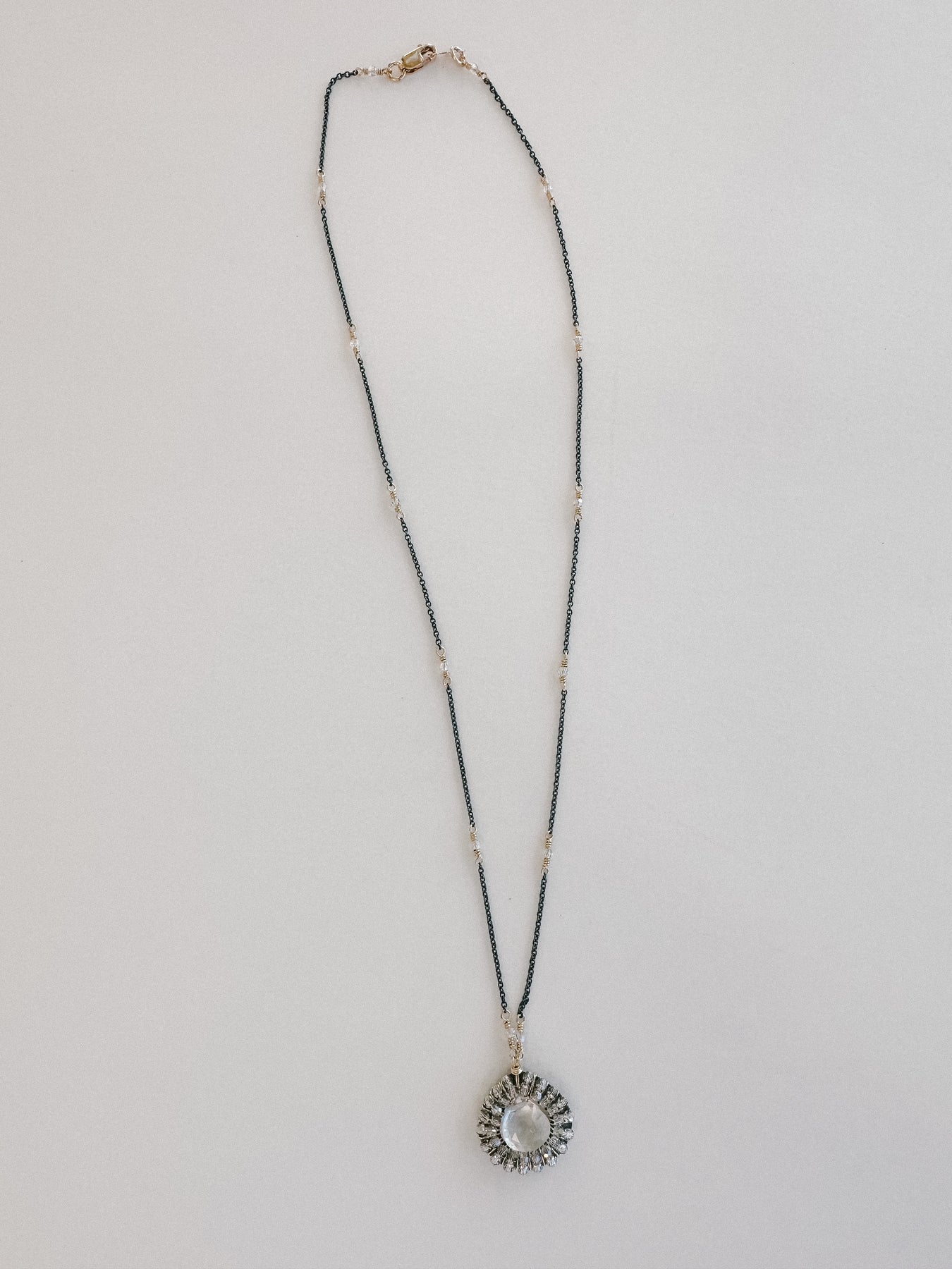 Add a sparkling twist to your look with this teardrop necklace, featuring rows of shimmering quartz crystals dance atop blackened sterling silver. With a 14k gold fill and handmade in a Los Angeles studio, this delicate chain brings elegance that's sure to catch every eye.