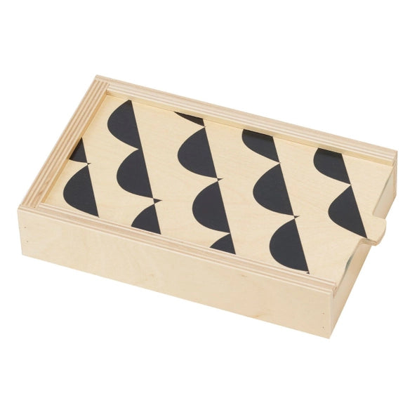 Don't just play the game of dominoes - play it in style! This Domino Set - Curves Black/Natural is a classic game with a super stylish makeover. Handmade in Los Angeles, each piece is a unique, charming gift - perfect for housewarming or as a hostess present! Made from baltic birch and hand printed, each decorative sliding-top box comes with double six jumbo dominoes (28 pieces). Wood is a natural material and may contain different elements of grain and knots. it also can change the color slightly from item to item, but don't worry - it only adds to the beauty of the piece. The imperfections truly make these items perfect!