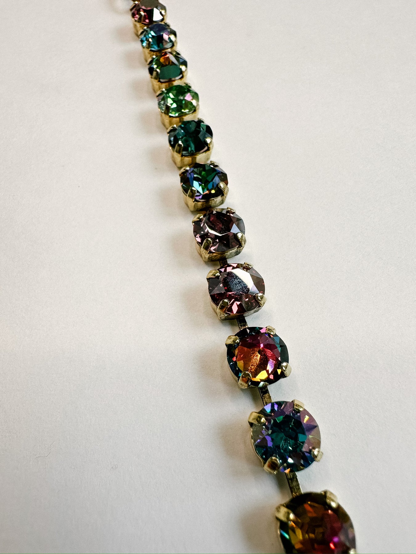We are absolute in love with the Izzy Crystal bracelet, it adds the perfect sparkle to any wrist stack. Eclipse color combination is stunning with shades of iridescent blues, pinks and purples. Layer it in or wear it all on its own, you will fall in love!