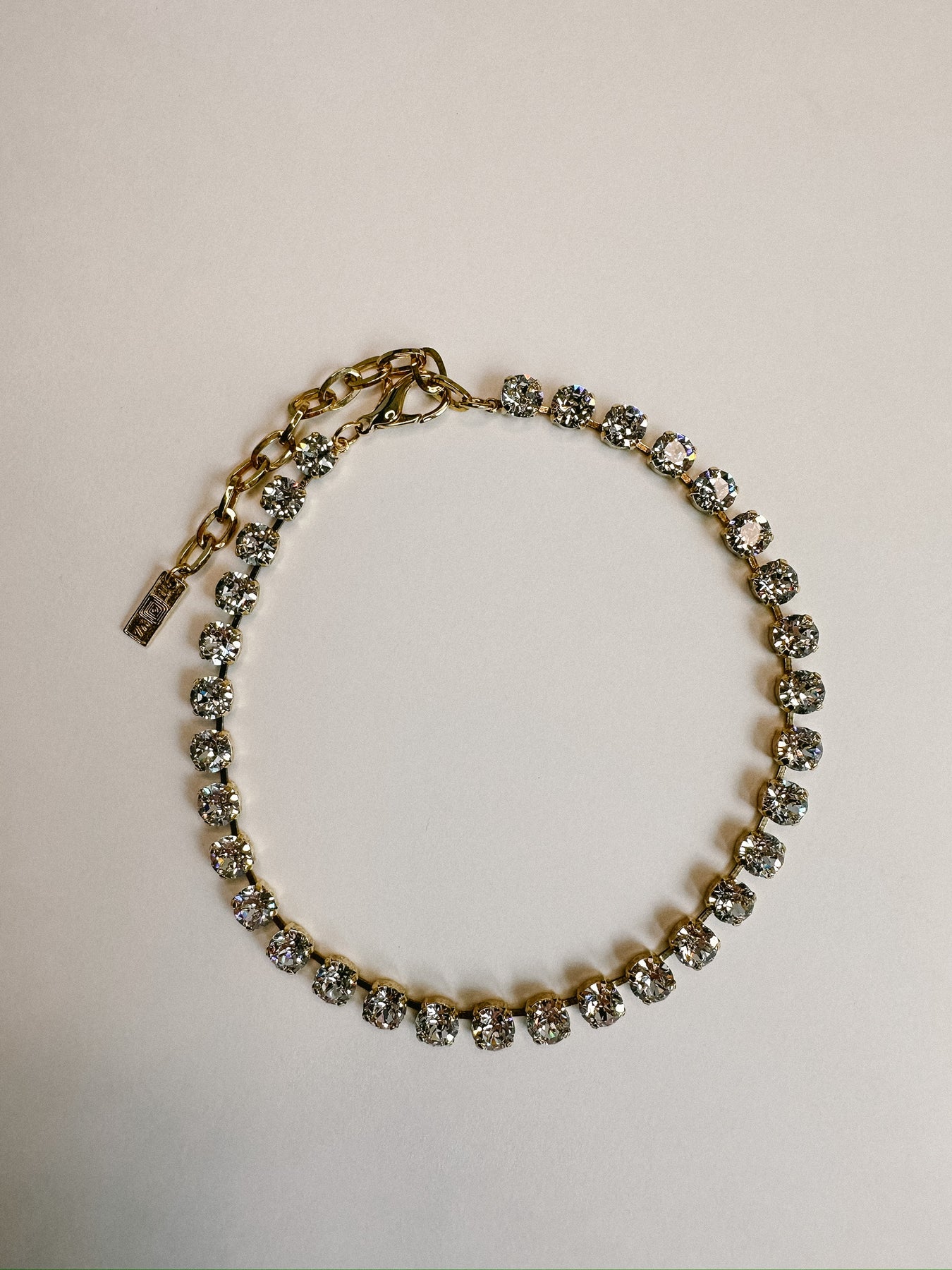 The Oakland Crystal Necklace in Antique Gold Clear is an absolute showstopper around your neck. These stunning clear crystals light up with every movement, creating a brilliant sparkle. Style it solo for maximum impact or layer it with other pieces and have even more fun with your look. Shine on!