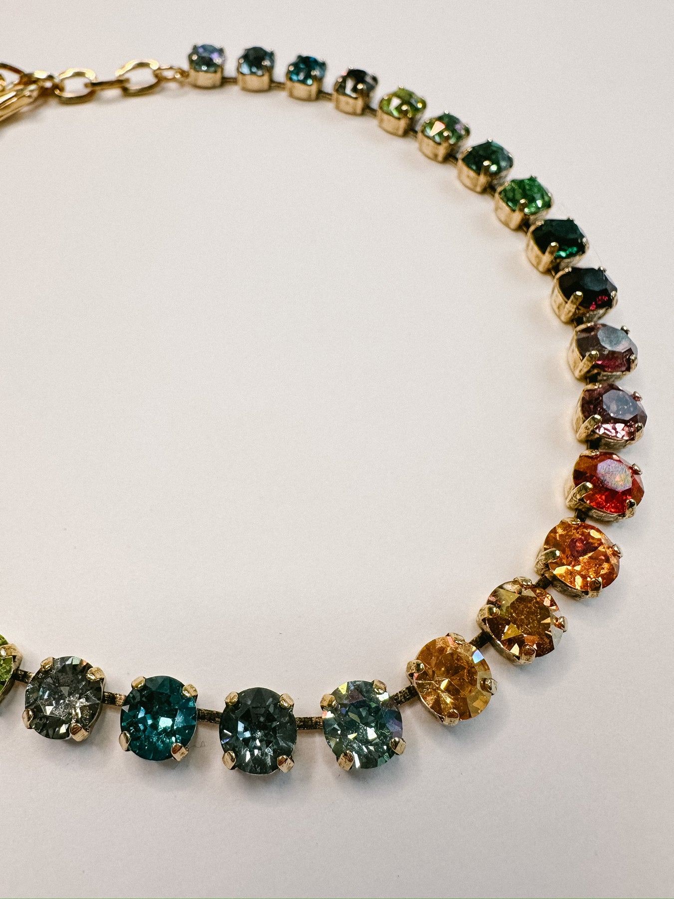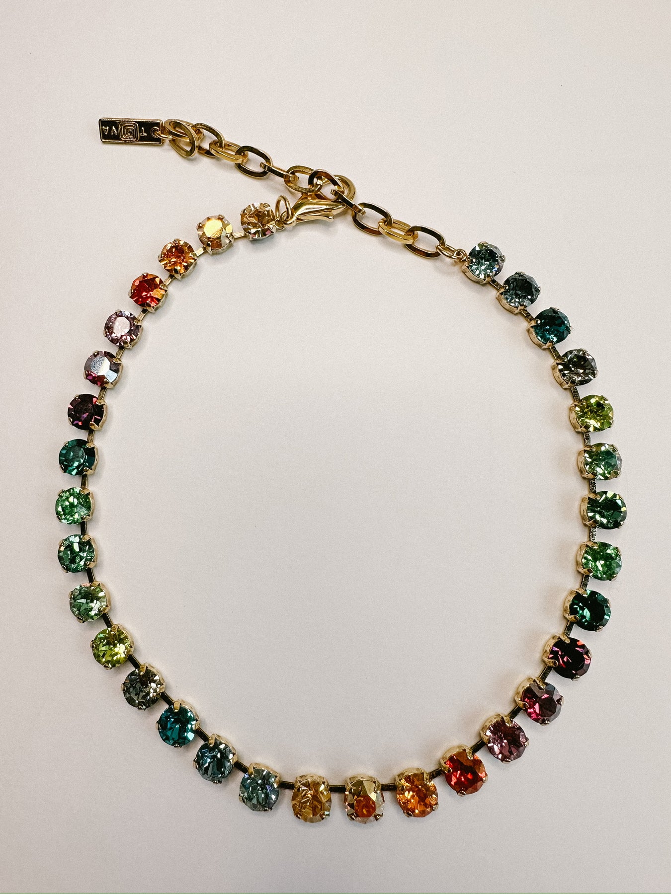 The Oakland Crystal Necklace in Earth, Wind, Fire is an absolute showstopper around your neck. These stunning rainbow toned crystals light up with every movement, creating a brilliant sparkle. Style it solo for maximum impact or layer it with other pieces and have even more fun with your look. Shine on!