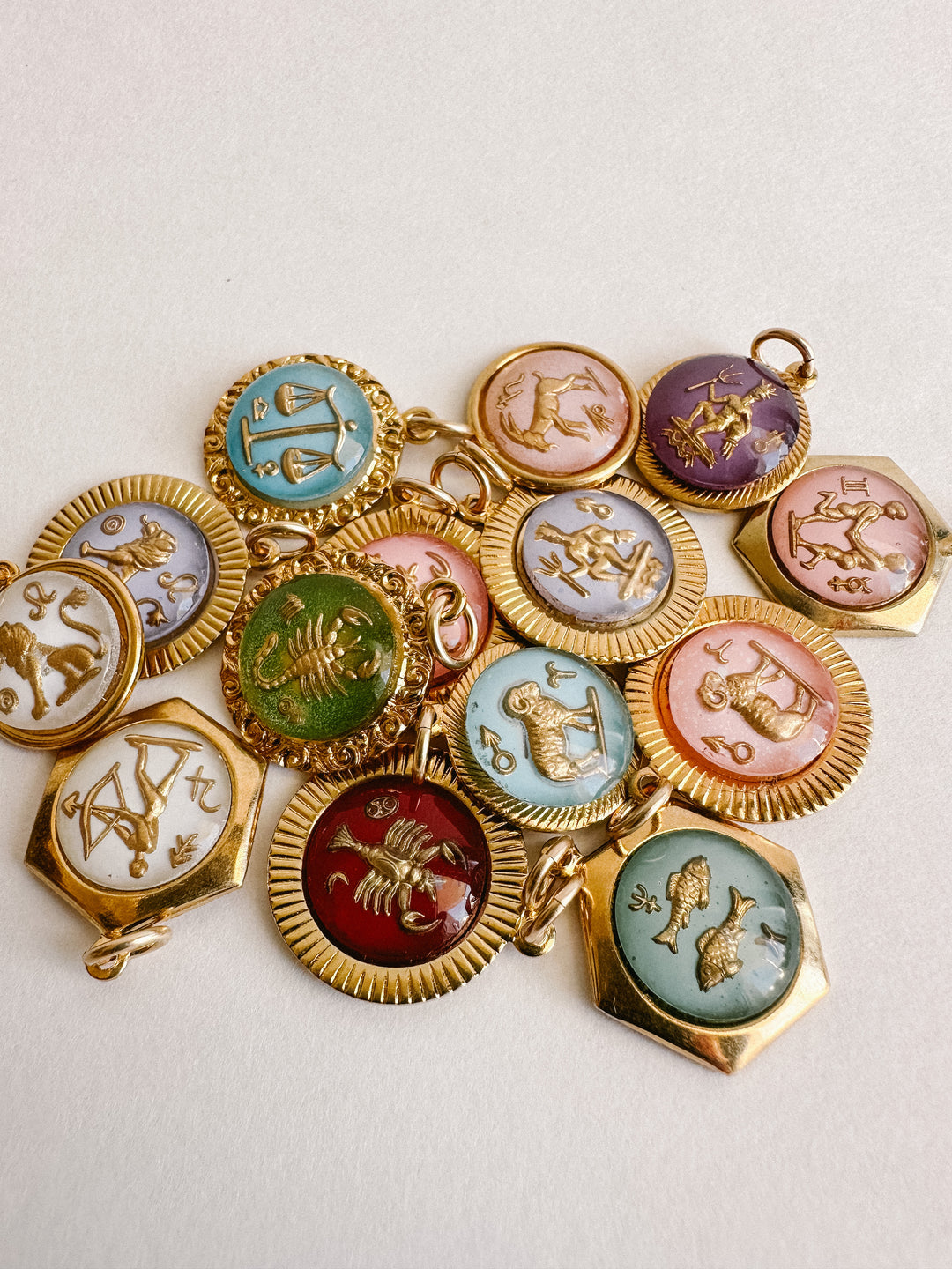 Check out these beautiful and unique vintage zodiacs. Sourced from Germany to Japan and found at Los Angeles flea markets.